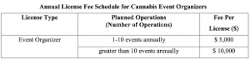 The state will also charge fees to license events involving cannabis.