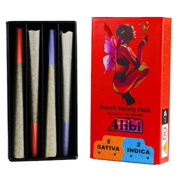 The Alibi Variety Pack has your back when you need options or a little extra. Each pack combines 4 prerolls, 1 gram each. Whether you’re indecisive, planning for all moods, or just stocking up, this variety lets you mix, match, and elevate your day your way. High-potency, terpene-rich, and crafted for moments when “one size fits all” just isn’t enough.