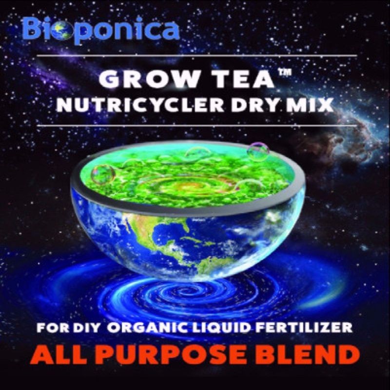 It provides a relatively balanced ratio of liquid fertilizer in terms of NPK and their PPM parts per million in water. By using a ratio of 25 lb of Grow Tea All Purpose Blend, in 80 gallons of fresh water, it is possible to produce a liquid fertilizer with a total nutrients value of 7500 PPM. The final NPK value and concentration of organics, nitrates and other elements depends in part, on the operator technique and a general understanding of the Bioponica process of 'nutricycling.