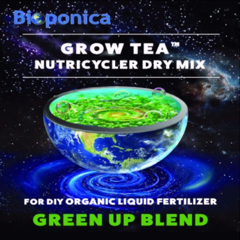 By using a ratio of 25 lb of Grow Tea Green Up Blend, in 80 gallons of fresh water, it is possible to produce a liquid fertilizer with a total nutrients value of 10,000 PPM. The final NPK value and concentration of organics, nitrates and other elements depends in part, on the operator technique and a general understanding of the Bioponica process of 'nutricycling.