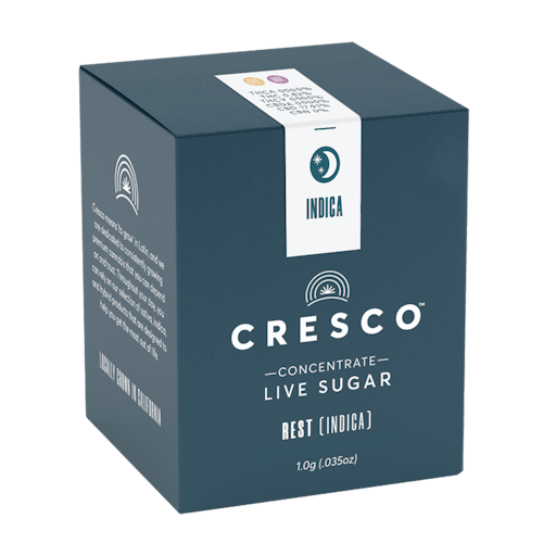 Cresco Rest Live Resin Sugar is available in 500mg, 1g, and 2g. A shimmery crystalline concentrate. Derived from fresh frozen cannabis to ensure maximum cannabinoid and terpene retention, our suite of live concentrates is aromatic and potent.