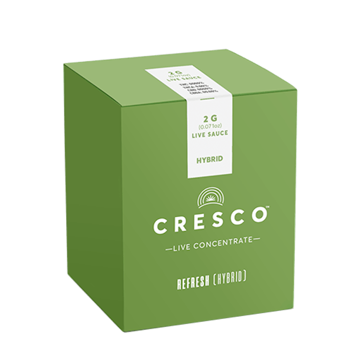 Cresco Refresh Live Resin Sauce is available in 500mg, 1g, and 2g. A jelly-like consistency comprised of both a syrupy liquid and granular crystals. Derived from fresh frozen cannabis to ensure maximum cannabinoid and terpene retention, our suite of live concentrates is aromatic and potent.