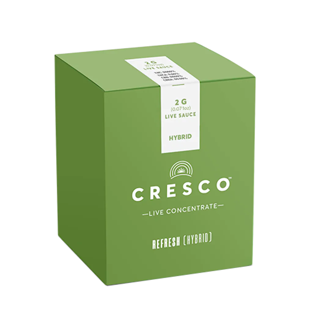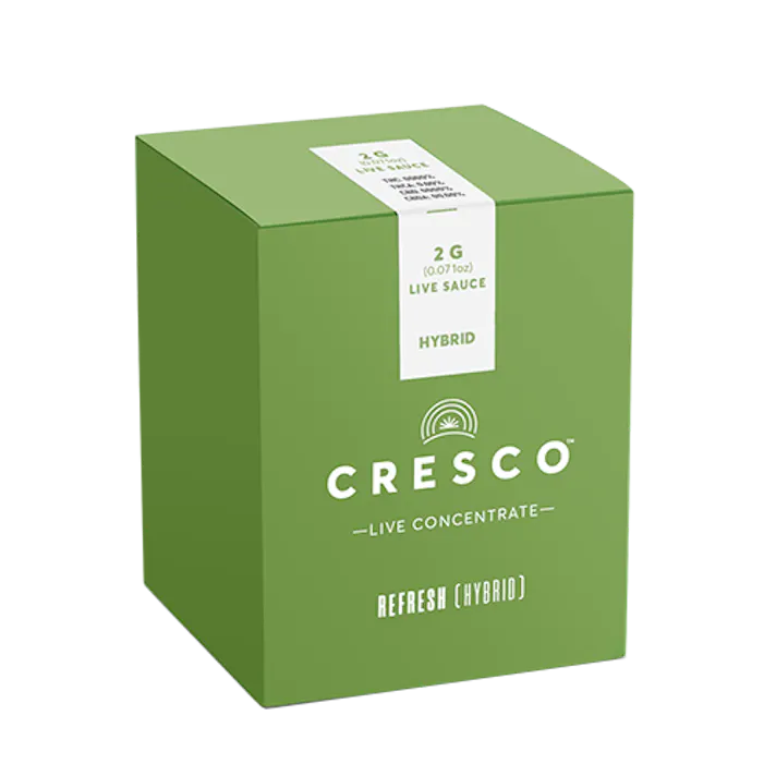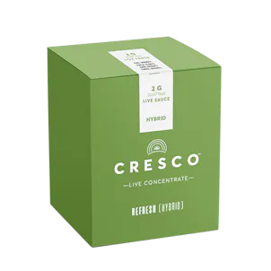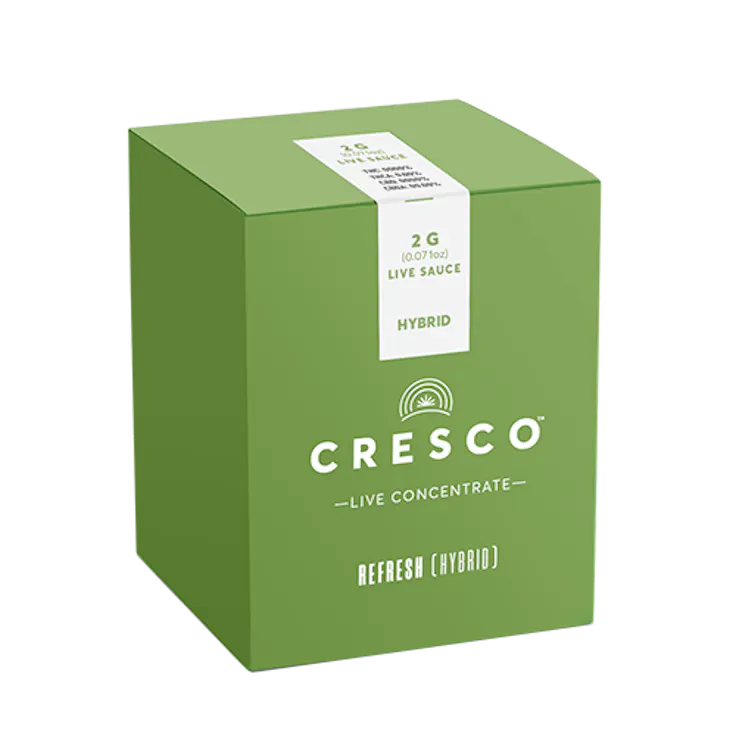 Cresco Refresh Live Resin Sauce is available in 500mg, 1g, and 2g. A jelly-like consistency comprised of both a syrupy liquid and granular crystals. Derived from fresh frozen cannabis to ensure maximum cannabinoid and terpene retention, our suite of live concentrates is aromatic and potent.