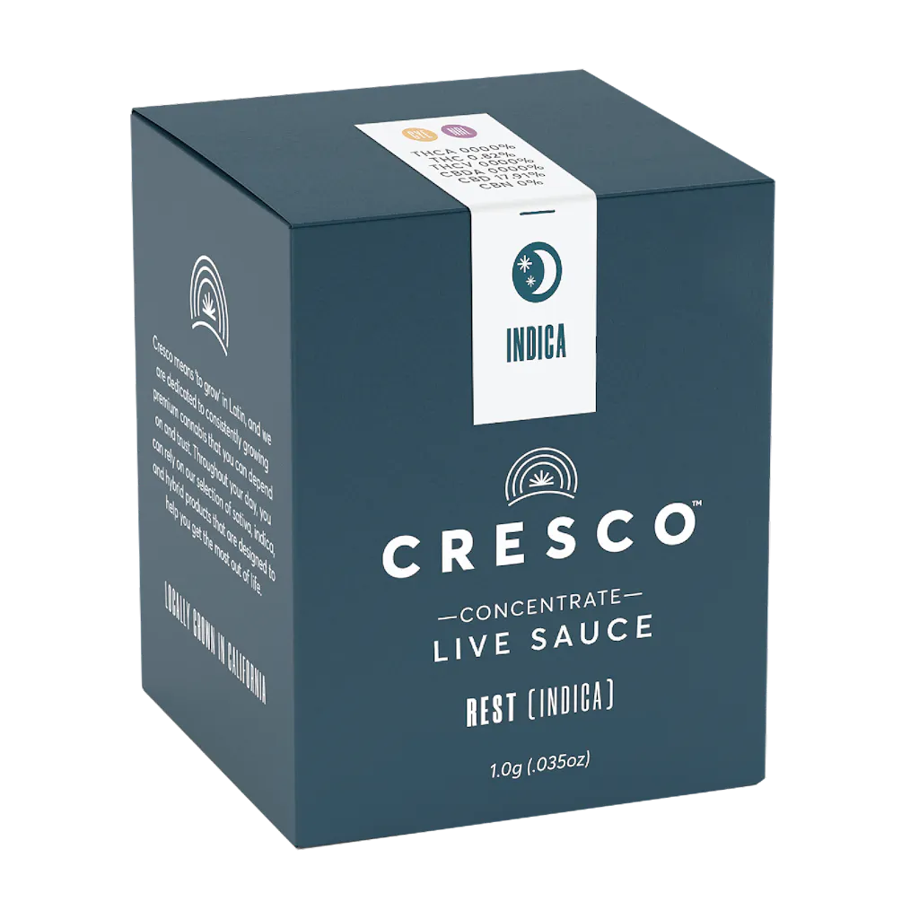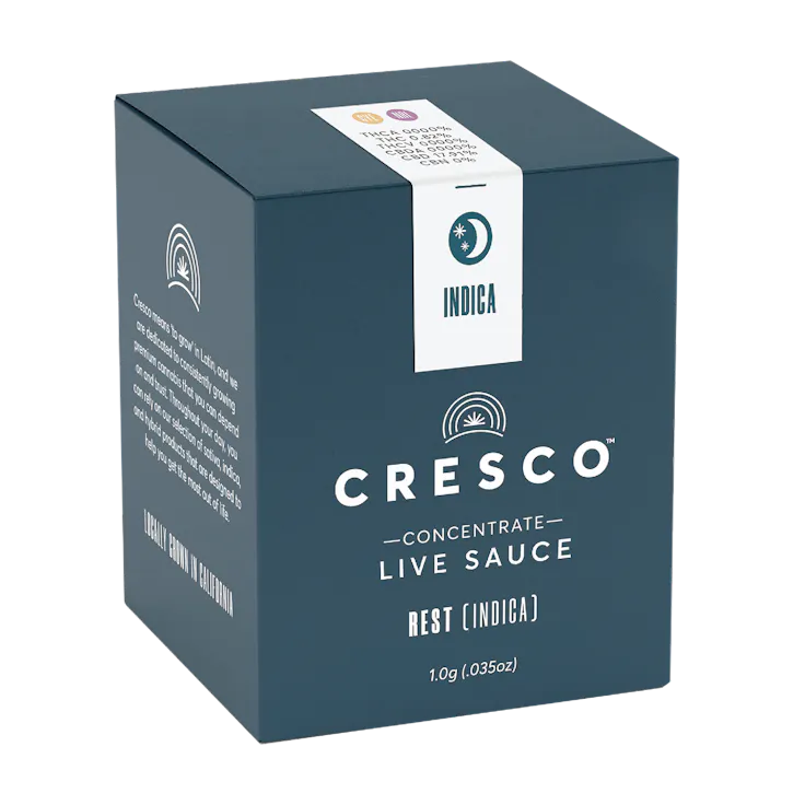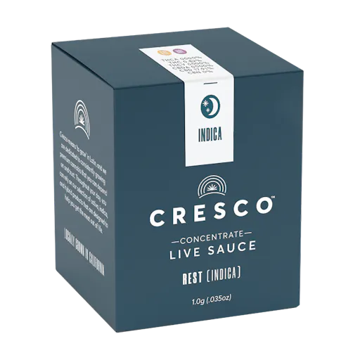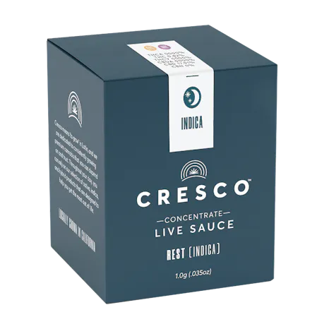 Cresco Rest Live Resin Sauce is available in 500mg, 1g, and 2g. A jelly-like consistency compRestd of both a syrupy liquid and granular crystals. Derived from fresh frozen cannabis to ensure maximum cannabinoid and terpene retention, our suite of live concentrates is aromatic and potent.