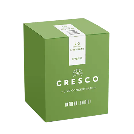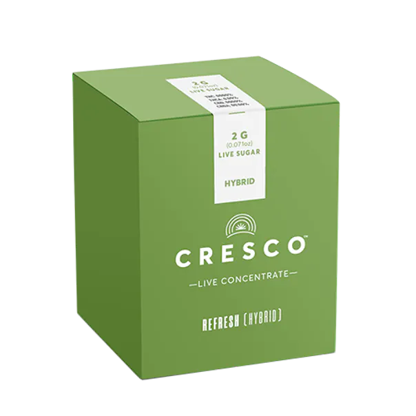 Cresco Refresh Live Resin Sugar is available in 500mg, 1g, and 2g. A shimmery crystalline concentrate. Derived from fresh frozen cannabis to ensure maximum cannabinoid and terpene retention, our suite of live concentrates is aromatic and potent.