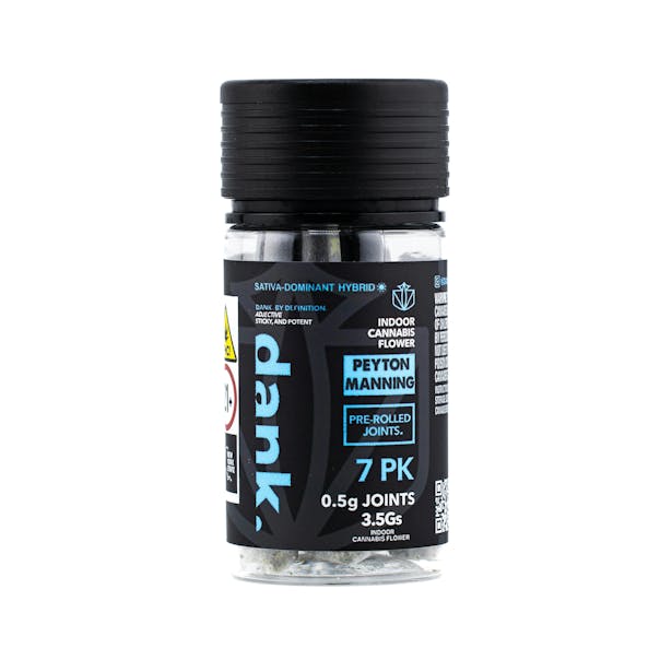 Brace yourself for a blast of euphoria with our DANK Pre-Roll 7 Pack featuring Peyton Manning. Bred as a tribute to Denver’s legendary QB, Peyton Manning is a powerhouse strain that throws hard and hits harder. A fusion of SFV OG and Chemdawg 91, this one starts with a cerebral blitz — energetic, buzzy, and euphoric — before settling into a body-warming chill that lingers long after the final snap. It’s loud, long-lasting, and definitely not for rookies. If you’re chasing a high with championship-level effects, this one’s calling the plays.