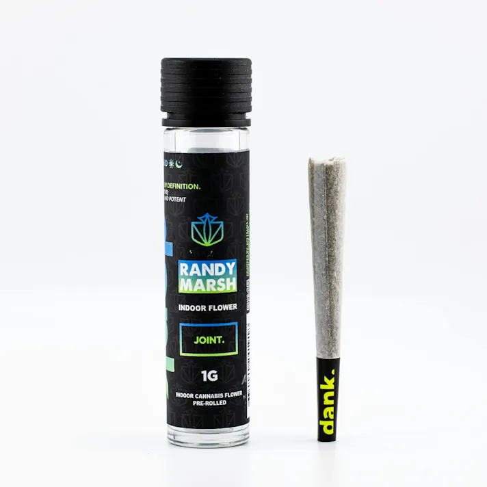A one gram (1G) pre-roll joint of premium DANK Randy Marsh flower rolled in classic joint paper. Randy Marsh is a potent hybrid strain resulting from a cross between Apples and Bananas and Gary Payton. Its effects are felt almost instantaneously, delivering a powerful impact to the mind and inducing a state of profound euphoria. As your consciousness ascends to greater heights, you'll experience a surge in energy accompanied by heightened focus, occasionally leading to fits of laughter.