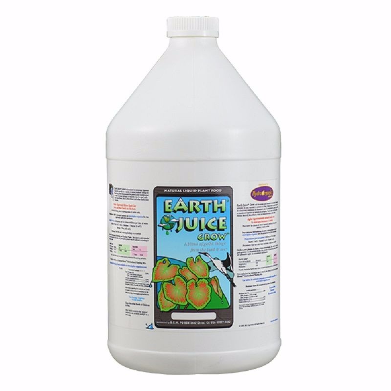 A World-Wide Favorite Since 1991 as a “Best” Choice for a Grow formula plant food. Earth Juice Grow is a natural-organic liquid fertilizer that is formulated to encourage robust vegetative stem and leaf growth for a variety of indoor/outdoor foliage and flowering plants. Earth Juice Grow’s Non-Burning, No Salt Residue formula is intended for “Hand-Feeding” applications only. Not for use with drippers, micro sprayers and hydroponics. An Ideal choice for all planting mixes, coco-coir and native soils. Earth Juice Grow and Bloom formulas may be mixed and used together for a customized feeding solution. See Feeding Charts, Keep It Simple and Earth Juice Original Formulas. Available sizes: Pints, Quarts, Gallons, 2.5 Gallons, 5 Gallons & 55 Gallons. By special request: 265 Gallon totes with a built in metal pallet and bottom discharge spouts are available.