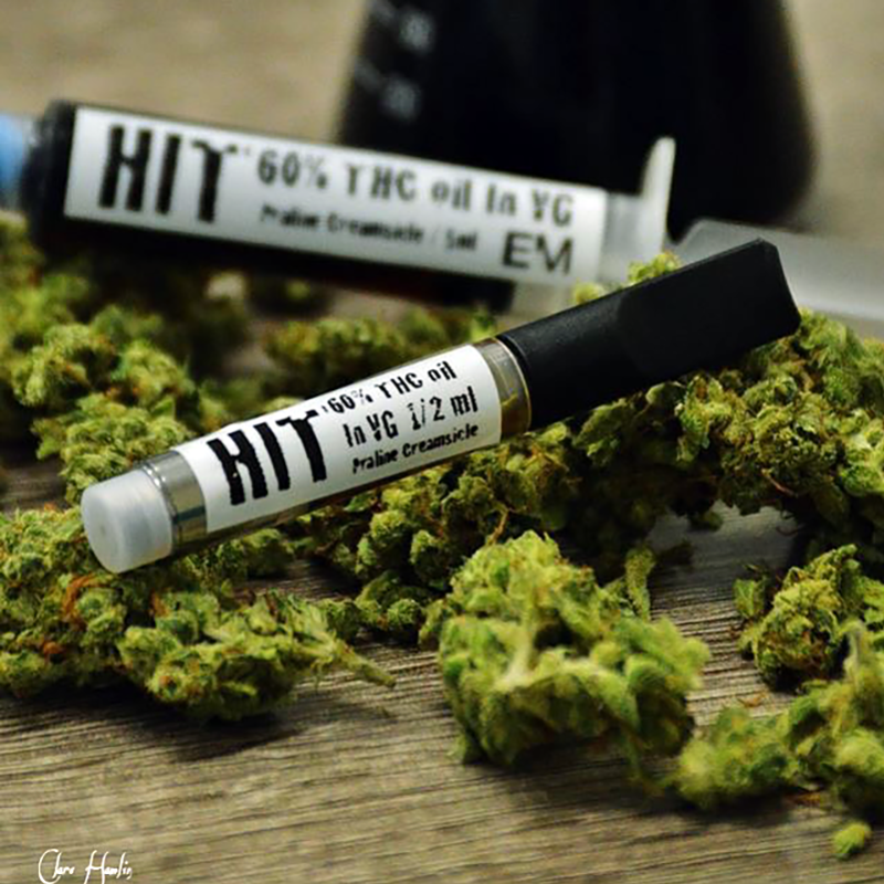 Our HIT product line comes in three sizes, 300mg refillable cartridges, 3g in 5ml syringes, and 9g in 15ml amber bottles. If you are new to our HIT line, or THC oils we recommend starting off with our refillable cartridge. If experienced with THC oil, or using a tank, we would recommend the 5ml syringes or 15ml amber bottles.