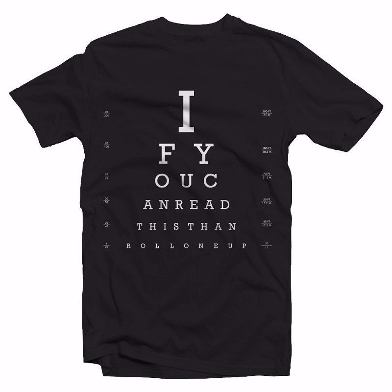 Eye Chart Tee T-shirt Center front graphic Solid colorway Machine wash cold 100% cotton Made in USA