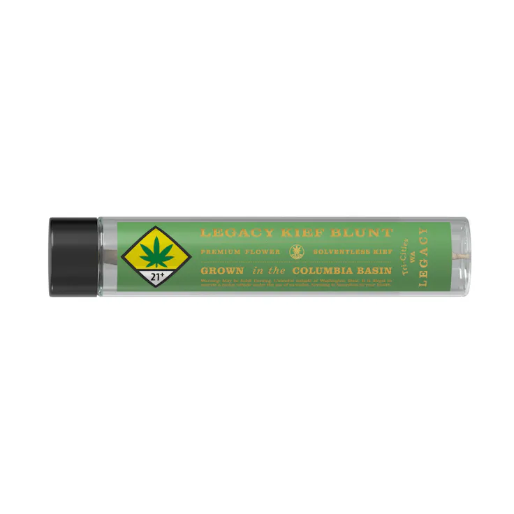 100% Premium Indoor Flower - Hemp Wrap Blunt - Solventless Kief Infused - LEGACY - Grown In The Columbia Basin- Proudly Produced In Tri Cites WA - Est. 2015 - Handcrafted - Artisanal Cannabis - Sustainable Methods - Single Source - Smoke Clean; Hayaa Green