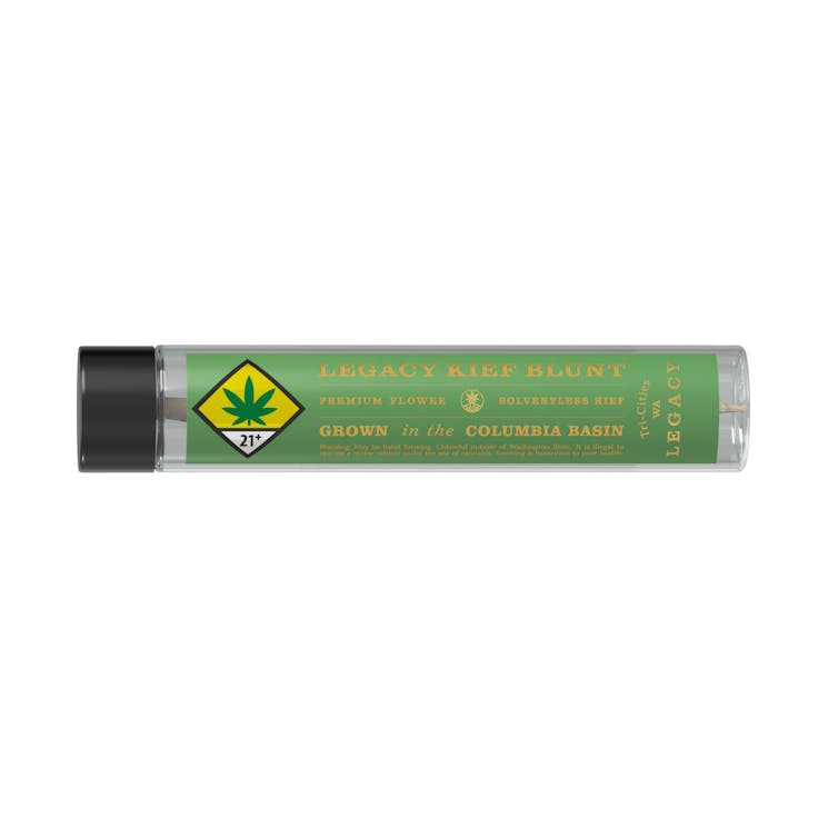 100% Premium Indoor Flower - Hemp Wrap Blunt - Solventless Kief Infused - LEGACY - Grown In The Columbia Basin- Proudly Produced In Tri Cites WA - Est. 2015 - Handcrafted - Artisanal Cannabis - Sustainable Methods - Single Source - Smoke Clean; Hayaa Green