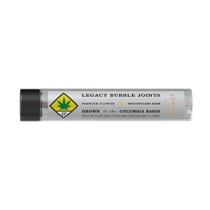 100% Premium Indoor Flower - Pre Roll - Solventless Bubble Hash Infused - LEGACY - Grown In The Columbia Basin- Proudly Produced In Tri Cites WA - Est. 2015 - Handcrafted - Artisanal Cannabis - Sustainable Methods - Single Source - Smoke Clean; Hayaa Green
