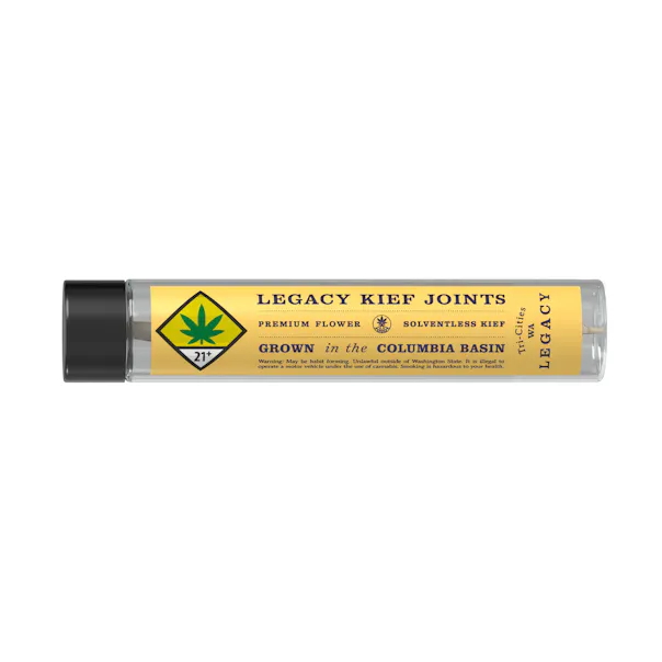 100% Premium Indoor Flower - Pre Roll - Solventless Kief Infused - LEGACY - Grown In The Columbia Basin- Proudly Produced In Tri Cites WA - Est. 2015 - Handcrafted - Artisanal Cannabis - Sustainable Methods - Single Source - Smoke Clean; Hayaa Green