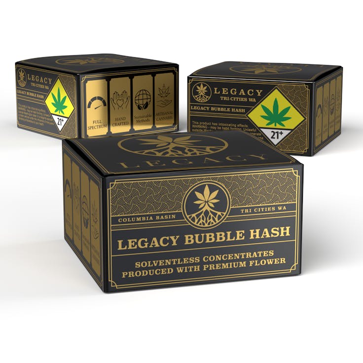 Solventless Ice Water Bubble Hash - LEGACY - Grown In The Columbia Basin- Proudly Produced In Tri Cites WA - Est. 2015 - Handcrafted - Artisanal Cannabis - Sustainable Methods - Single Source - Smoke Clean; Hayaa Green