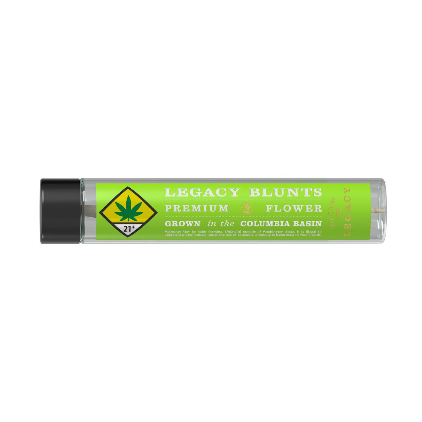 100% Premium Indoor Flower - Hemp Wrap Blunt - LEGACY - Grown In The Columbia Basin- Proudly Produced In Tri Cites WA - Est. 2015 - Handcrafted - Artisanal Cannabis - Sustainable Methods - Single Source - Smoke Clean; Hayaa Green