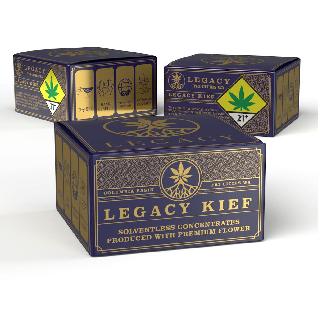 Solventless Dry Sift Kief - LEGACY - Grown In The Columbia Basin- Proudly Produced In Tri Cites WA - Est. 2015 - Handcrafted - Artisanal Cannabis - Sustainable Methods - Single Source - Smoke Clean; Hayaa Green