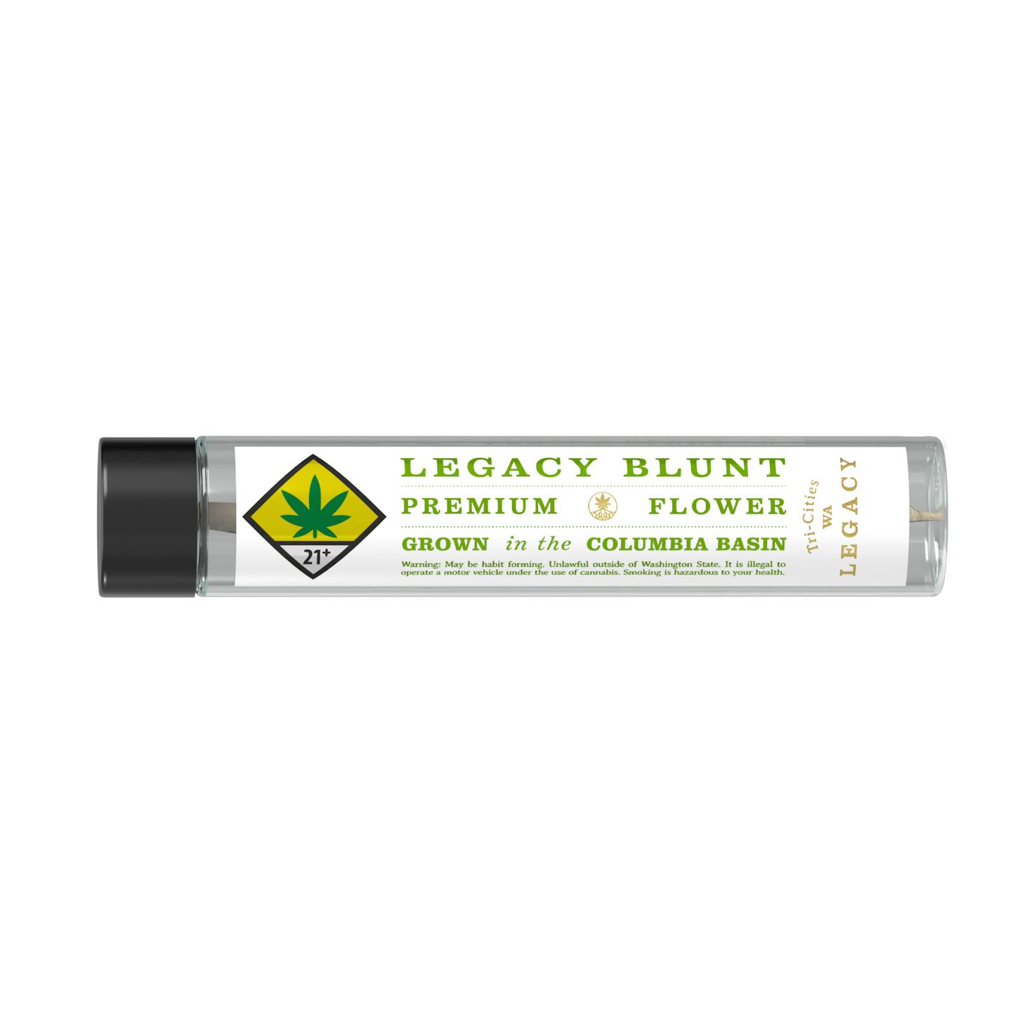 100% Premium Indoor Flower - Hemp Wrap Blunt - LEGACY - Grown In The Columbia Basin- Proudly Produced In Tri Cites WA - Est. 2015 - Handcrafted - Artisanal Cannabis - Sustainable Methods - Single Source - Smoke Clean; Hayaa Green