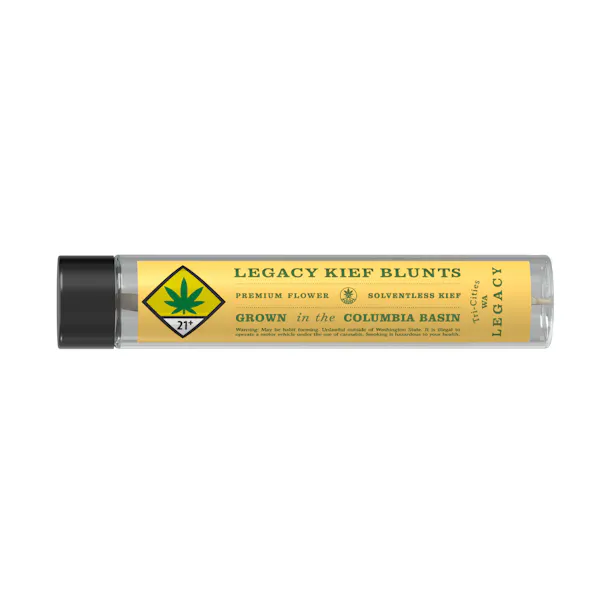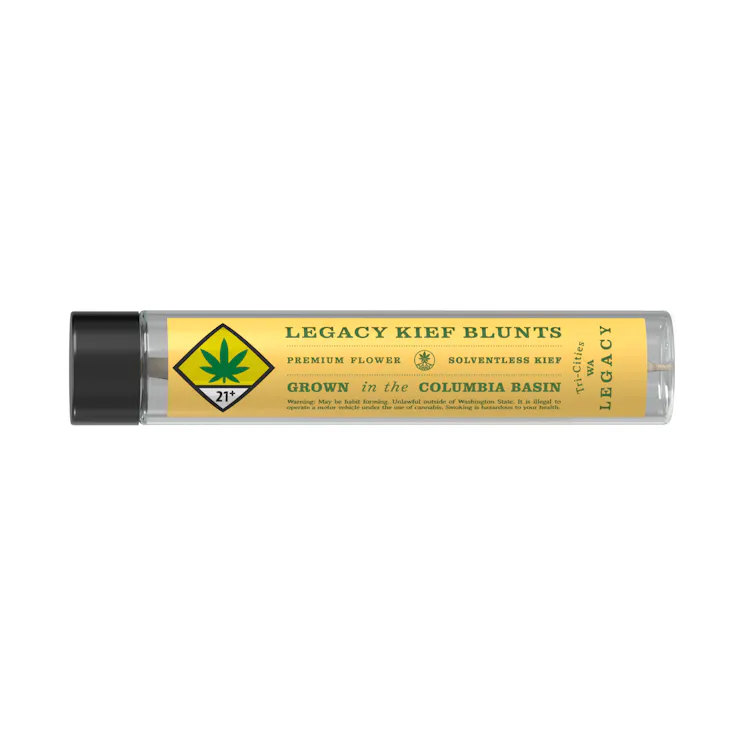 100% Premium Indoor Flower - Hemp Wrap Blunt - Solventless Kief Infused - LEGACY - Grown In The Columbia Basin- Proudly Produced In Tri Cites WA - Est. 2015 - Handcrafted - Artisanal Cannabis - Sustainable Methods - Single Source - Smoke Clean; Hayaa Green