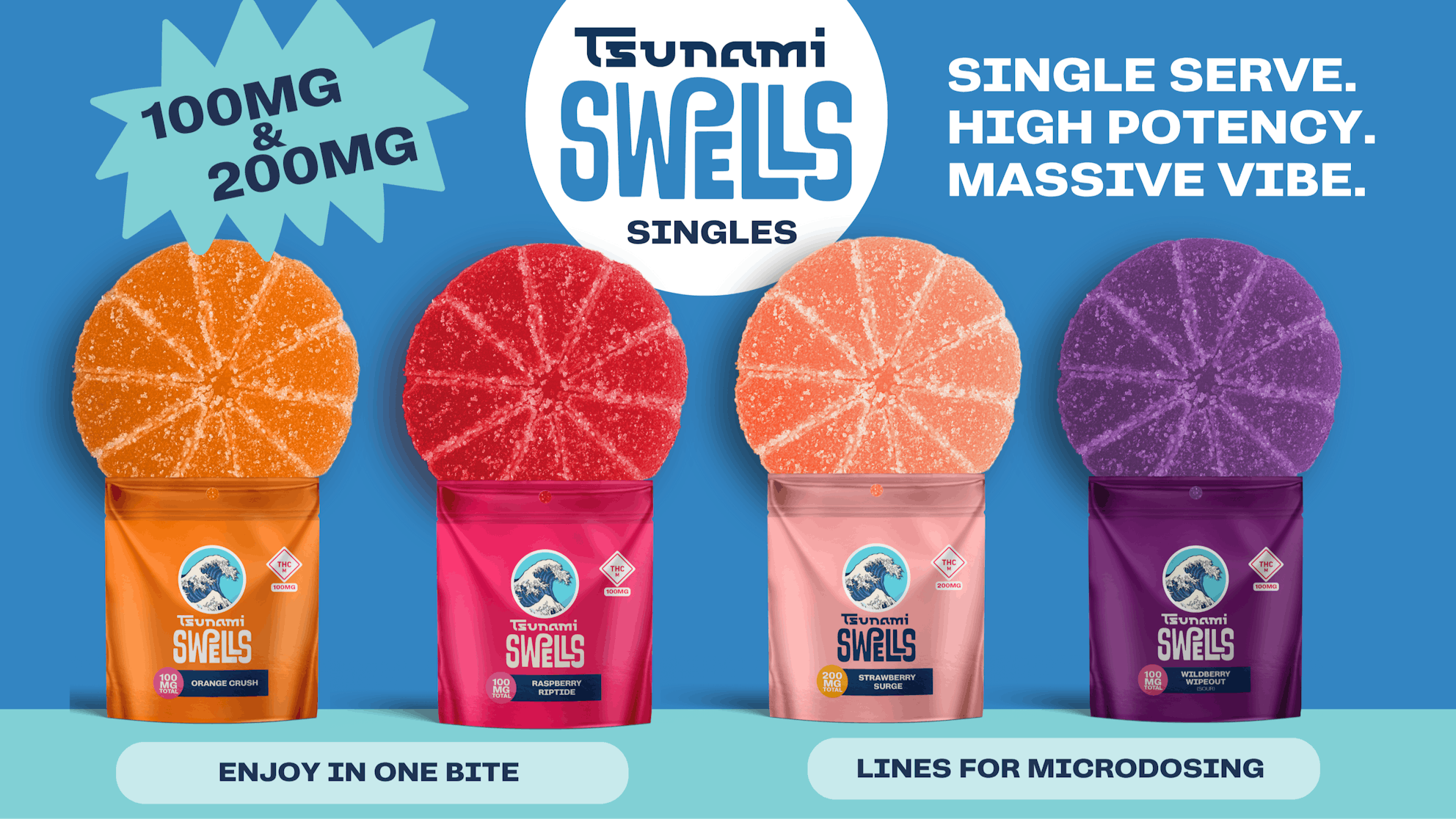 Tsunami explores your senses with its robust THC content, packs a ton of playfulness with flavors, and is a first of its kind product with its premium, trendsetting composition.
