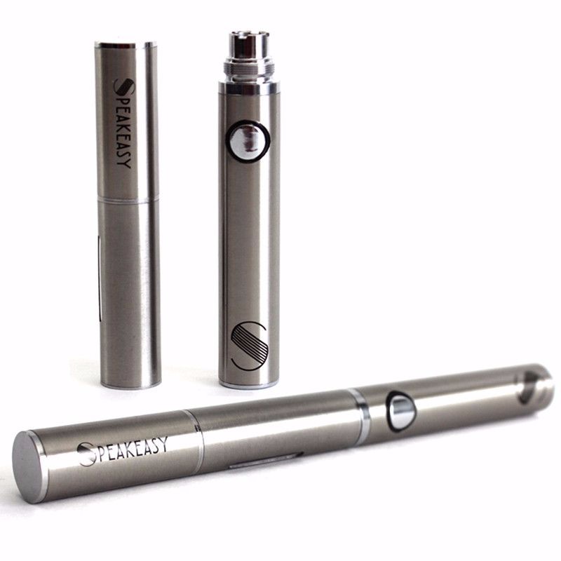 Speakeasy stainless steel full case enclosure batteries are discreet and portable with standard USB charger and 510 threading. High quality and dependable 3 piece battery enclosure allows for removable top for mouth piece access while protecting your vape cartridge.