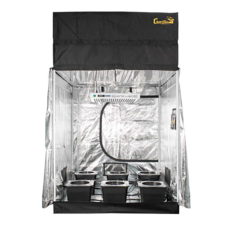 The SuperRoom 5′ x 5′ LED Grow Room Package includes a 5′ x 5′ Gorilla Grow Tent; a Kind LED K5-XL750 grow light; your choice of the 20-Site Super Flow or 6-Site Bubble Flow Bucket dual action hydroponic system; timers for complete automation; an Phresh carbon scrubber & filter; digital readout thermometer / hygrometer; an internal circulation fan; an adjustable net trellis system; an electrical GFCI adapter; a pH Testing Kit; a TDS Meter;a TechnaFlora Nutrient Bundle; an instructional DVD and a 3 year warranty!