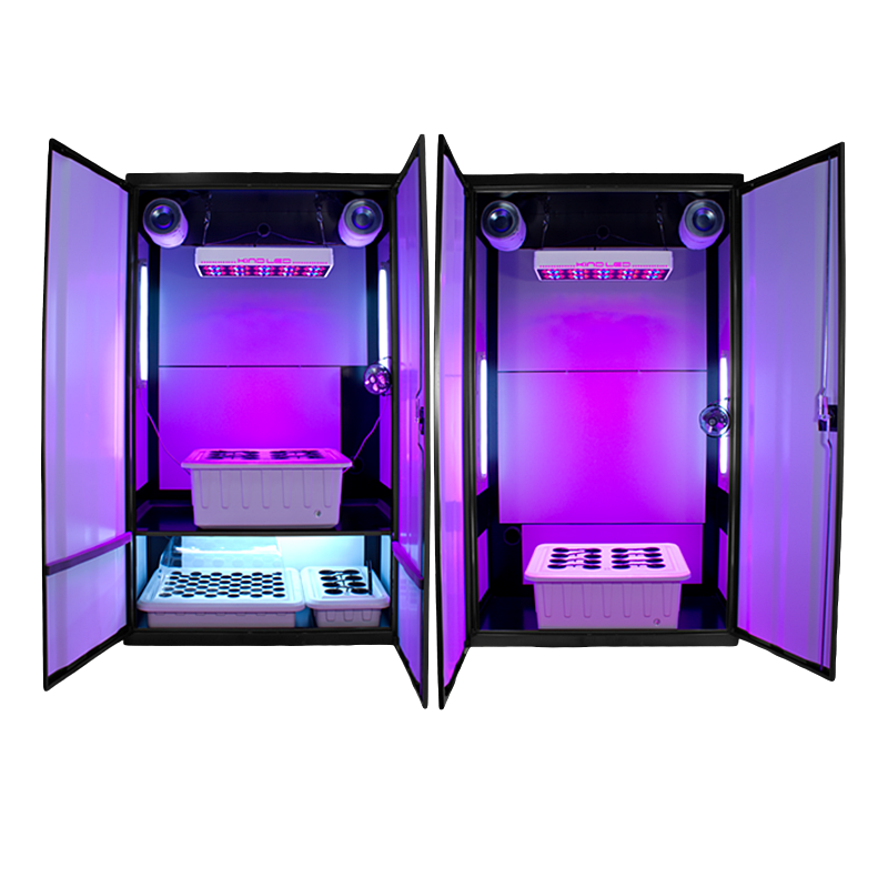 Grow big or grow home! The SuperTrinity LED Grow Cabinet is the Cadillac of grow cabinets: a three chamber, dual cabinet system designed to offer a perpetual cycle grow with maximum output. You can clone and germinate in the dedicated cloning chamber, continue growth of your plants in the dedicated vegetation chamber, then transplant your beauties into the flowering cabinet for the final flowering and harvest stages.