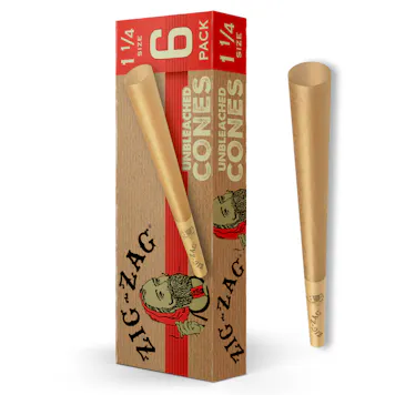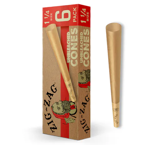 Zig-Zag Unbleached Cones are ultra thin crafted using a blend of natural fibers without the addition of any ingredients or processing. Recycled cardstock booklet with vegetable ink printing.