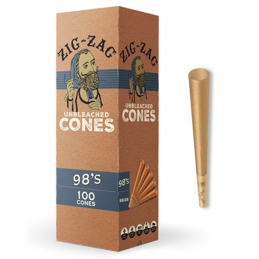 Zig-Zag Unbleached Cones are ultra thin crafted using a blend of natural fibers without the addition of any ingredients or processing. Recycled cardstock booklet with vegetable ink printing.