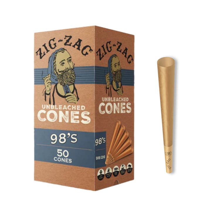 Zig-Zag Unbleached Cones are ultra thin crafted using a blend of natural fibers without the addition of any ingredients or processing. Recycled cardstock booklet with vegetable ink printing.