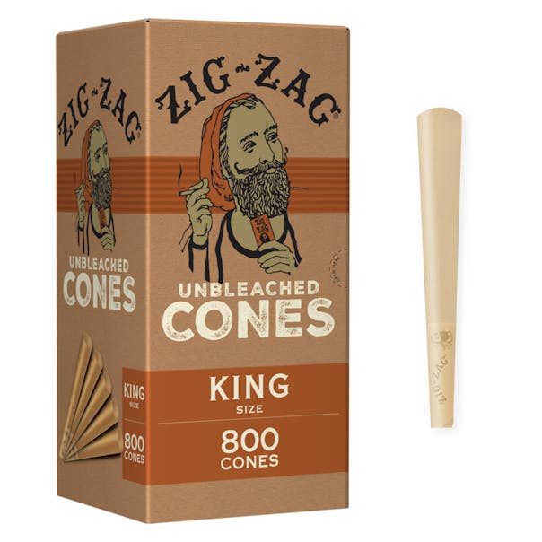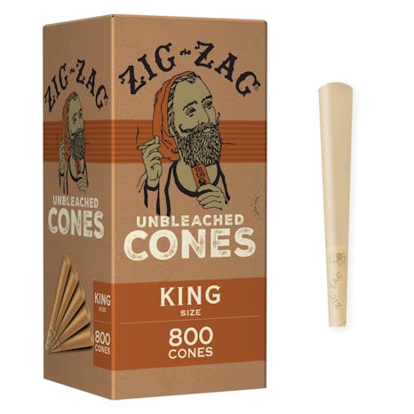 Zig-Zag Unbleached Cones are ultra thin crafted using a blend of natural fibers without the addition of any ingredients or processing. Recycled cardstock booklet with vegetable ink printing.