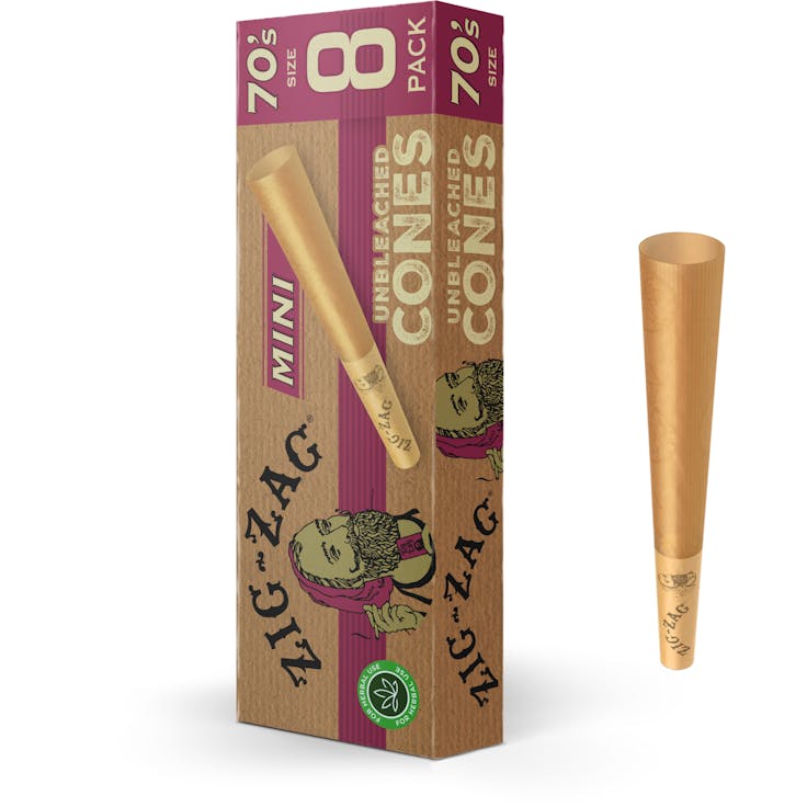 Zig-Zag Unbleached Cones are ultra thin crafted using a blend of natural fibers without the addition of any ingredients or processing. Recycled cardstock booklet with vegetable ink printing.