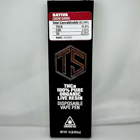 NEW TerpSciences Organic Live Resin 1g disposable vapes! Chemdawg-Sativa