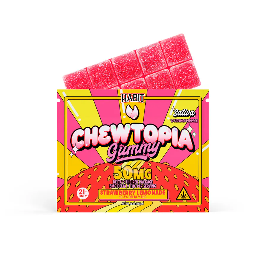 One gummy bar, ten tasty pieces, infinite good vibes. The Habit Chewtopia Gummy is your ticket to flavor-packed elevation, with 50mg of Delta 9 THC split into 10 microdose-friendly servings. Break off a piece or go full-send—this bar is built for whatever ride you’re on. Whether you're easing into your evening or chasing a full-body buzz, Chewtopia makes the trip delicious. Sweet, shareable, and potent AF—this is gummy evolution. This is Habit Chewtopia. Variety: Sativa 5mg THC per dose | 50mg THC total