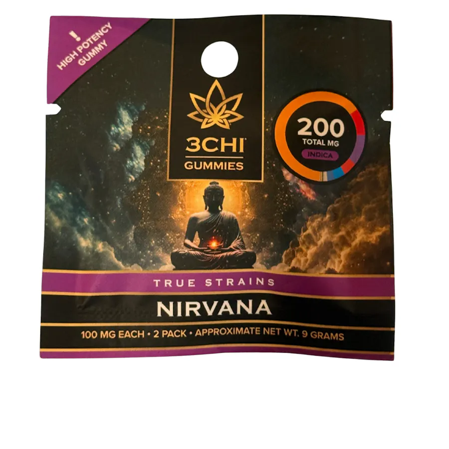 Nirvana is your passport to peace. Part of 3CHI’s True Strains line, this calming indica is crafted to quiet the noise and melt stress away, guiding you into a serene, grounded state that lives up to its name. 🎯 Flavor & Aroma: Taste: Smooth vanilla and earth with a subtle hint of berry Smell: Softly sweet with calming herbal undertones 🧠 Effects & Timeline: Onset: Gentle wave of calm settles over the body Mid: Heaviness sets in—perfect for shutting down overthinking Finish: Deep relaxation and mental stillness 🌟 Great For: Nighttime wind-down Deep meditation, rest, or unplugging from chaos Stress, anxiety, or emotional overwhelm 🛠 Product Specs: Type: Indica Cannabinoid Profile: Delta‑8 THC with tranquil terpene blend Effects Profile: “Nirvana” category (relaxation and inner calm) Form: Vape cartridge or disposable Potency: Strong, sedative, ideal for end-of-day use ⚠️ Dosing Note: Best reserved for evening or bedtime May cause drowsiness in low-tolerance users 💤 Effects: Calm · Sedated · Content 🌈 Flavor Notes: Vanilla · Earth · Berry 🔥 Cannabinoid Base: Delta‑8 THC 💪 Potency: Deep and soothing 🩺 Ideal Use: Evening · Stress relief · Sleep aid 📍Available now at Wicked Superstore — visit in-store or order online.