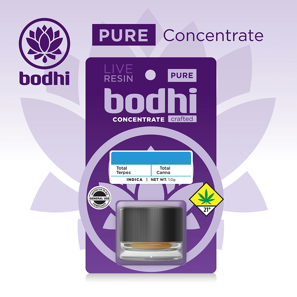 Bodhi Pure is our premium line of live resin concentrates, created from fresh frozen nug runs of sustainably grown cannabis. These extracts undergo a careful extraction process to preserve their exceptional terpene profiles, resulting in high-quality concentrates with unique flavors and aromas. The Bodhi Pure line offers a variety of concentrate consistencies including Terp Batter and Terp Crystal. Discover the exceptional taste and potency of Bodhi Pure concentrate today. -Premium -Live Resin -Nug Run -Full Spectrum