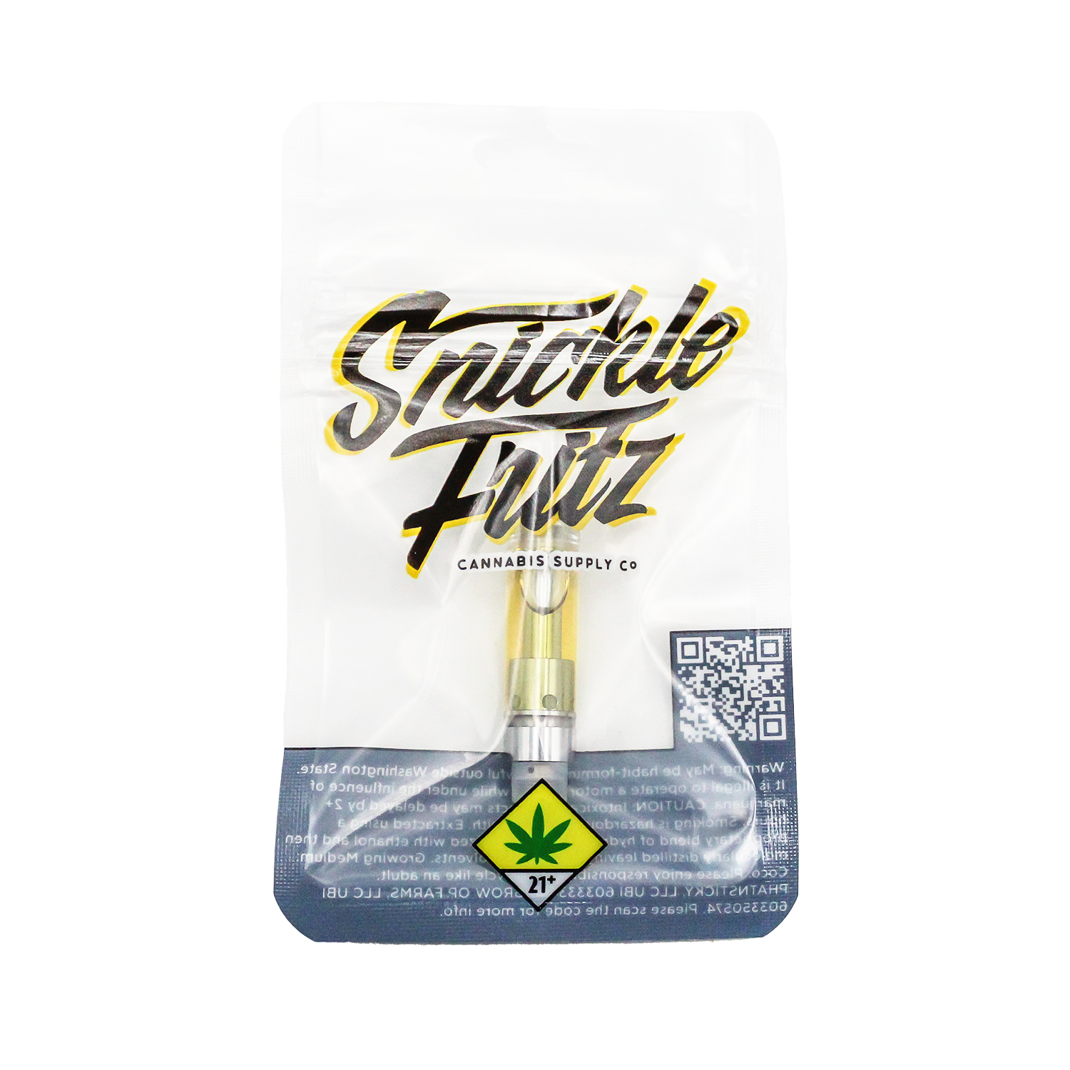 A 1g distillate cartridge filled with Snickle Fritz premium oils. Mexican Sativa x Thai Sativa x Afghani. (Flavors: Floral, Pine & Earth), (Effects: Focus, Uplifting & Creative)