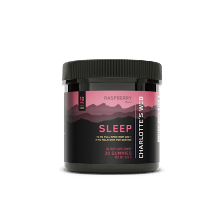 CBD Raspberry Hemp Extract infused Gummies By Charlotte's Web. 60 Gummies 10mg each, totaling 600mg. Can be used for sleep contains 3mg Melatonin each.