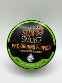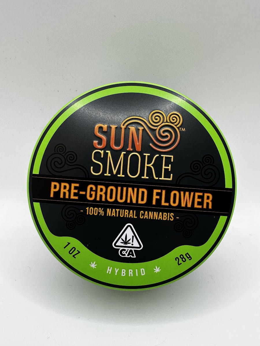 Immerse yourself in the California sun with Sun Smoke's premium sun-grown cannabis, cultivated in the heart of Santa Barbara County. This 28-gram jar of pre-ground hybrid flower delivers a perfectly balanced experience, blending the best of indica and sativa effects. Sun Smoke's commitment to sustainable, outdoor cultivation methods ensures a pure and potent product that captures the essence of the California landscape. Enjoy the convenience of pre-ground flower, ready to pack and enjoy whenever the mood strikes. Highlights- Sun-grown: Our cannabis is cultivated outdoors under the California sun, resulting in robust, flavorful buds. Hybrid blend: This carefully crafted blend offers the best of both worlds, providing a balanced experience that combines the uplifting effects of Sativas with the relaxing qualities of Indicas. Santa Barbara County: Known for its ideal growing conditions, Santa Barbara County produces some of the finest cannabis in the world. Pre-ground: Convenient and ready to use, our pre-ground flower makes enjoying your cannabis a breeze. 28 grams: This generous package size ensures you'll have plenty of Sun Smoke cannabis to enjoy. Experience the essence of California sunshine with Sun Smoke's sun-grown, hybrid blend cannabis.