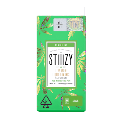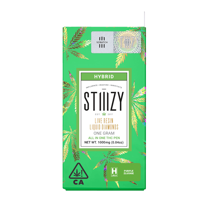 PURPLE ZLUSHIE | HYBRID Feelings: Relaxed | Euphoric | Happy Flavors: Grape | Berry | Sweet Helps with: Stress | Anxiety | Depression Immerse yourself in a serene, full-body relaxation and sweet, fruity euphoria with Purple Zlushie, perfect for melting away stress and unwinding. Experience the highest potency with STIIIZY's all-in-one disposable THC Pen, featuring Live Resin Liquid Diamonds for true cannabis flavor. Discrete, portable, and rechargeable, it delivers a dab experience in the palm of your hand with bold flavors that set the standard for purity.