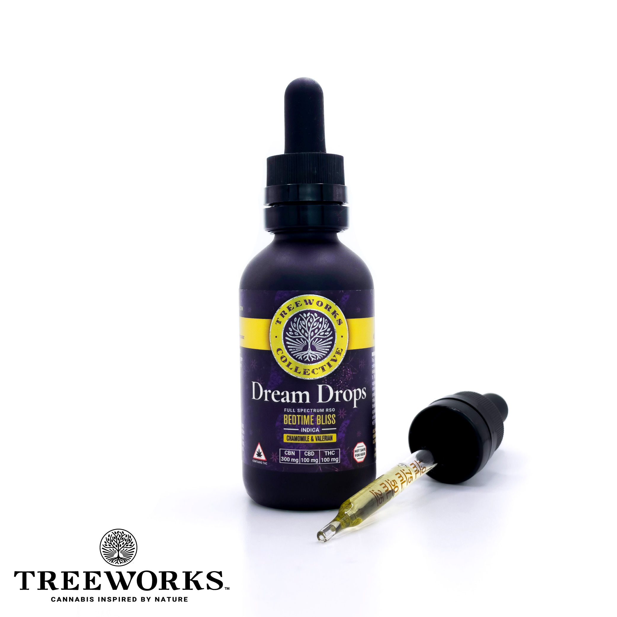 Treeworks’ Best Seller, Dream Drops, was created to help you fall asleep and stay asleep longer. The full body relief and sedative effects are perfectly suited for those hoping to gently relax into a deep and dreamy sleep. Wake up feeling rested and rejuvenated after enjoying the delicious and effective Dream Drops. Ingredients: Organic Coconut MCT Oil, Cannabis RSO, CBN, Organic Flavors, Organic Stevia, Organic Valerian Root, Organic Chamomile, Treeworks Indica Terpene Blend.