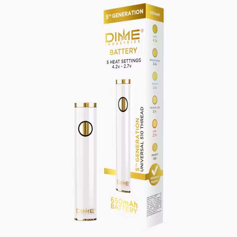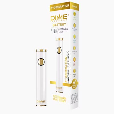 Dime Industries’ 5th Generation Battery has upgraded to include 5 unique voltage settings and preheat function for all consistencies. Designed with a 510 thread that perfectly compliments our tanks, this 650mAh battery features an industry-leading technology that provides enough power to last all day, all week, or even all month for light users thru the USB-C charging port. This device has an ICU chip that offers a customizable heating curve that heats instantly. Additionally, it contains a proprietary smart-chip for flavor preservation to prevent overheating or burning. Every Dime Industries’ battery includes a rechargeable USB-C charging cord, while the packaging doubles as a sleek, convenient carrying case for device safety and cleanliness. • Longest lasting 4.2v high capacity battery • Most powerful & reliable 650mAh battery in the industry • Universal with all 510 thread cartridges • Turbo chip offers a custom heating curve and instantly heats up between 425°f to 480°f • Proprietary smart chip for flavor preservation and to prevent over-burning • Operating the Device: 5 Clicks - Turn On/Off | 3 Clicks - Change Heat | 2 Clicks - Pre Heat • Five heat settings for different materials from 4.2v to 2.7v • USB-C Rechargeable with charging cord inside • Includes a carrying case for device safety and cleanliness