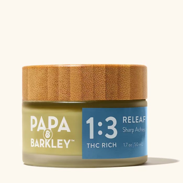 The 1:3 balm is rich in THC and provides relief to deep pain points and sore muscles. Our award-winning, all-natural balm formula is enriched with nourishing oils including eucalyptus, tea tree, peppermint and lavender. Papa & Barkley’s Releaf Balms are made with our signature solventless, chemical-free infusion process to preserve the plant’s full spectrum of cannabinoids, terpenes and phytonutrients for maximum therapeutic benefits and pain relief.