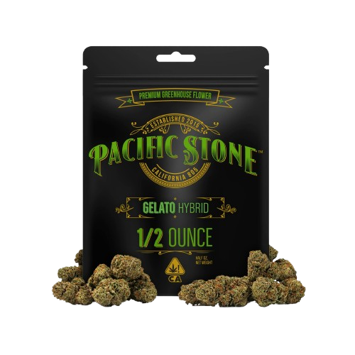 Pacific Stone's Gelato Hybrid 14g Pre-Pack offers a generous half-ounce of premium greenhouse-grown cannabis. This strain is a cross between Sherbet and Thin Mint GSC, resulting in a slightly indica-dominant hybrid (approximately 55% indica / 45% sativa). It delivers a balanced experience, combining uplifting cerebral effects with soothing body relaxation.