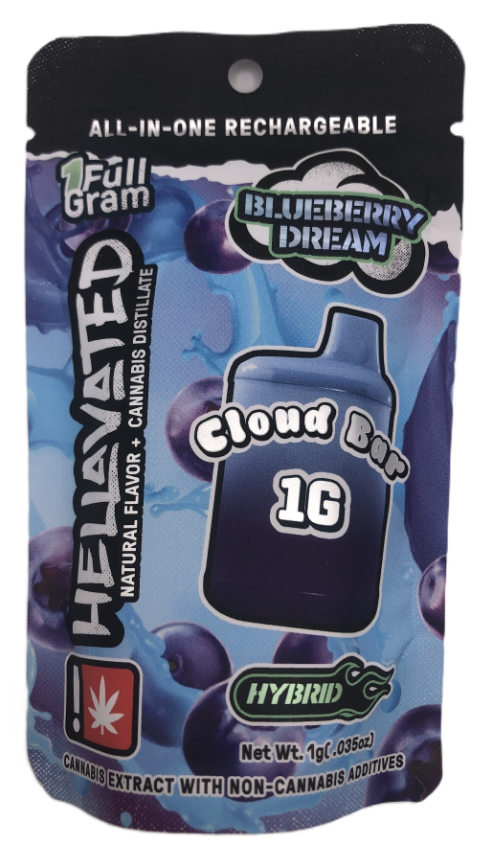 Hellavated Cloud Bar Blueberry Dream 1g, Cartridge - , CBD 0mg