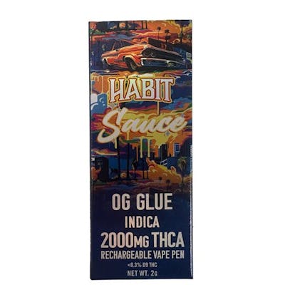 OG Glue is a 2 Gram THCA Sauce Disposable Vape Pen made with legal cannabinoids. Strain: Indica Delta 9 THC: <0.3% THCA: 1600.01mg Delta 9: 2.8mg Flavor: Citrus, Diesel, Pine Save 10% when you pay in store with CASH. Save 25% when you pay in store with $ACST Crypto.
