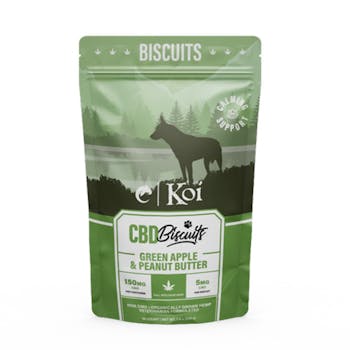 Help soothe your anxious or hyperactive dog’s worries with the help of hemp calming support. Koi Calming CBD Dog Biscuits contain an optimal, veterinarian-formulated blend of our Koi CBD full-spectrum hemp extract and natural chamomile, long used to support stress relief and relaxation. Delicious green apple and peanut butter flavors make our CBD calming dog biscuits a great addition to your pet’s wellness routine. Koi CBD Dog Biscuits are formulated without gluten, dairy, or GMOs so that you can feel comfortable knowing what you’re giving your best friend.