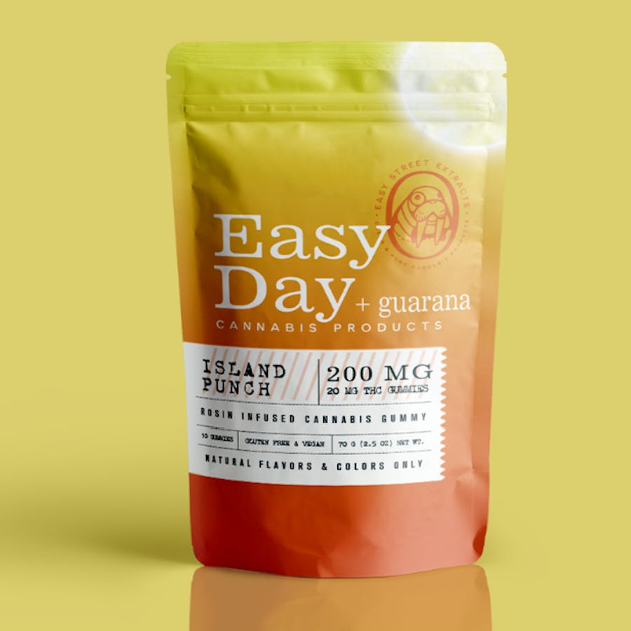 Easy Day line of gummies are infused with guarana to provide a natural boost to start your day. These little morsels of goodness are a combination of 5 tropical flavors: mango, pineapple, orange, lemon, and coconut. Easy Street edibles are full spectrum, producing an entourage effect that provides an enriched experience for the user. The full array of cannabinoids bring the unique therapeutic qualities of the plant to life, surely to help ease what ails you. Easy Street's rosin-based infusion is extracted in-house using only high quality cannabis. Always full spectrum, all natural colors and flavors, vegan, and gluten free. never use distillate, hydrocarbons, ethanol, nor any other potentially harmful solvent. 100% Oklahoma owned and operated. // PER GUMMY: Delta9-THC: 21.37mg CBC: 0.45mg CBG: 0.28mg Limonene: 0.24mg