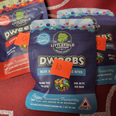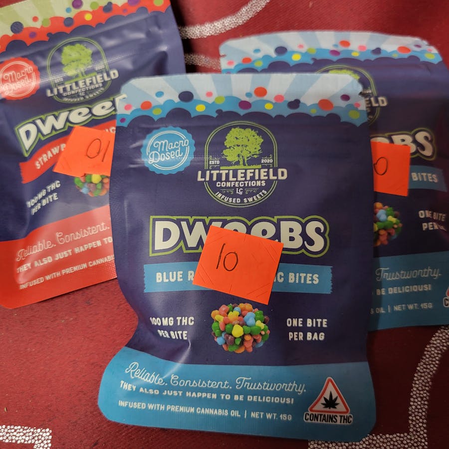 Macro dosed 100 mg dweeb (nerd bites) with a gummy, blue raspberry or strawberry
