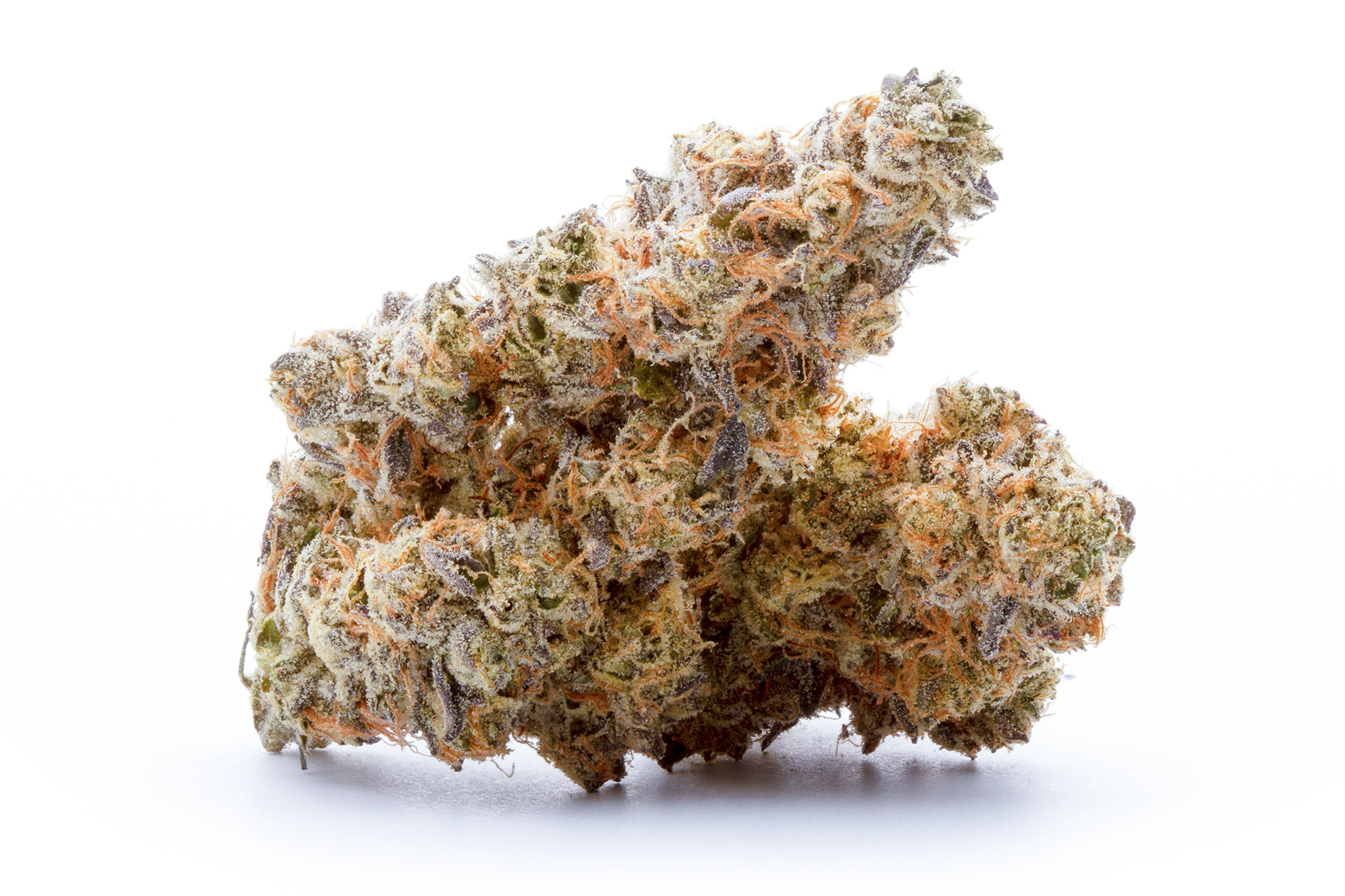 Grape Valley Kush is an almost entirely indica dominant hybrid strain created through a cross of the classic SFV OG X Grape Kush strains. The high starts with an uplifted and energetic high that is first felt in the back of the head and forehead before spreading throughout the rest of the body in warming waves. You'll feel talkative and upbeat with giggly tendencies at times. This head high is accompanied by a full body calming effect that leaves you pain-free and slightly sedated with a helpless feeling of couch-lock and hunger. This powerful bud has a delicious grapey flavor with hints of spicy kush and pungent earth. The aroma is of fresh citrus and spice with an earthy pungency that is released as the nugs are broken apart and smoked. This bud has lumpy and dense spade-shaped dark olive green nugs with rich purple undertones and leaves as well as a thick frosty coating of lavender hued crystal trichomes.